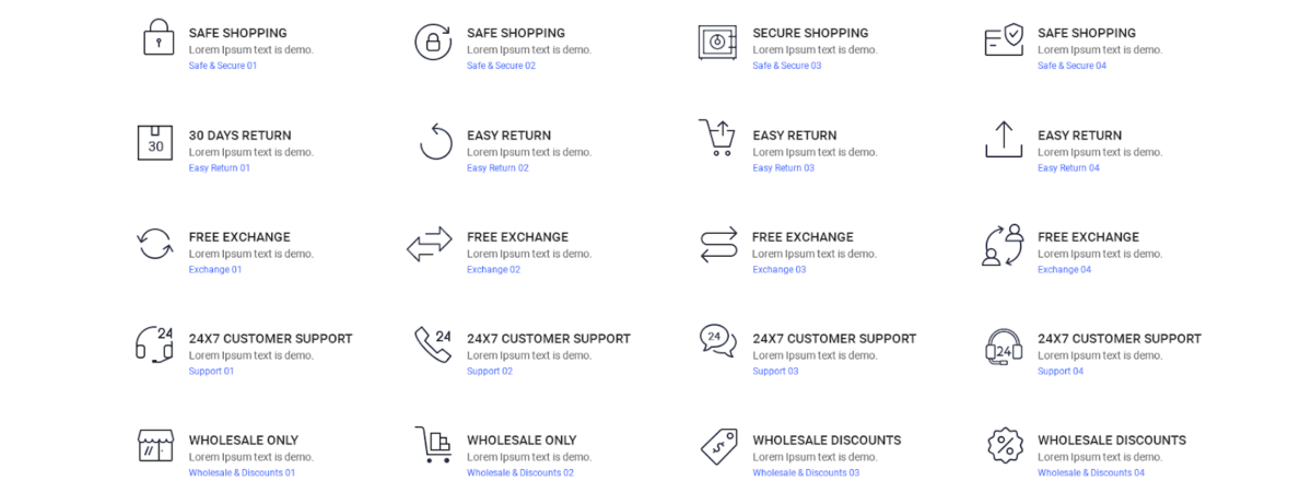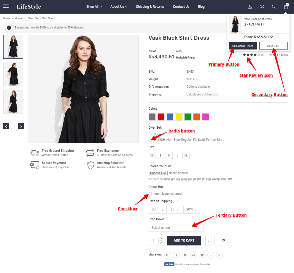 - Social Media Icons, Review Icons, and Increase-Decrease button, etc.