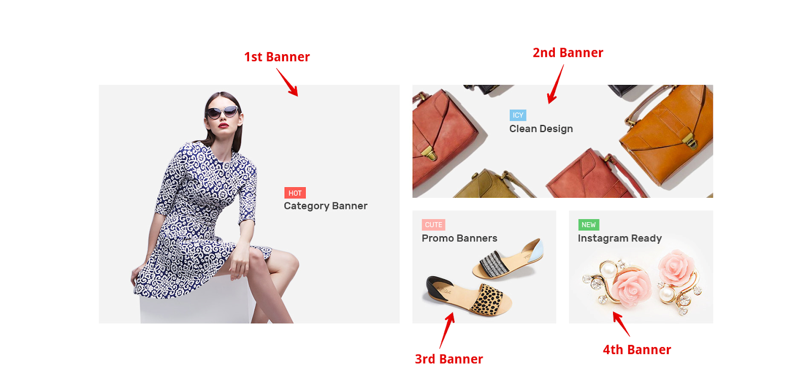 To add promotional images, first you need to upload the files in the Image Manager from Storefront of admin settings. Then, you have to copy and paste the name of the image (with extension) in the banner image fields. You can use the images provided in the drive URL or images of your choice as well.