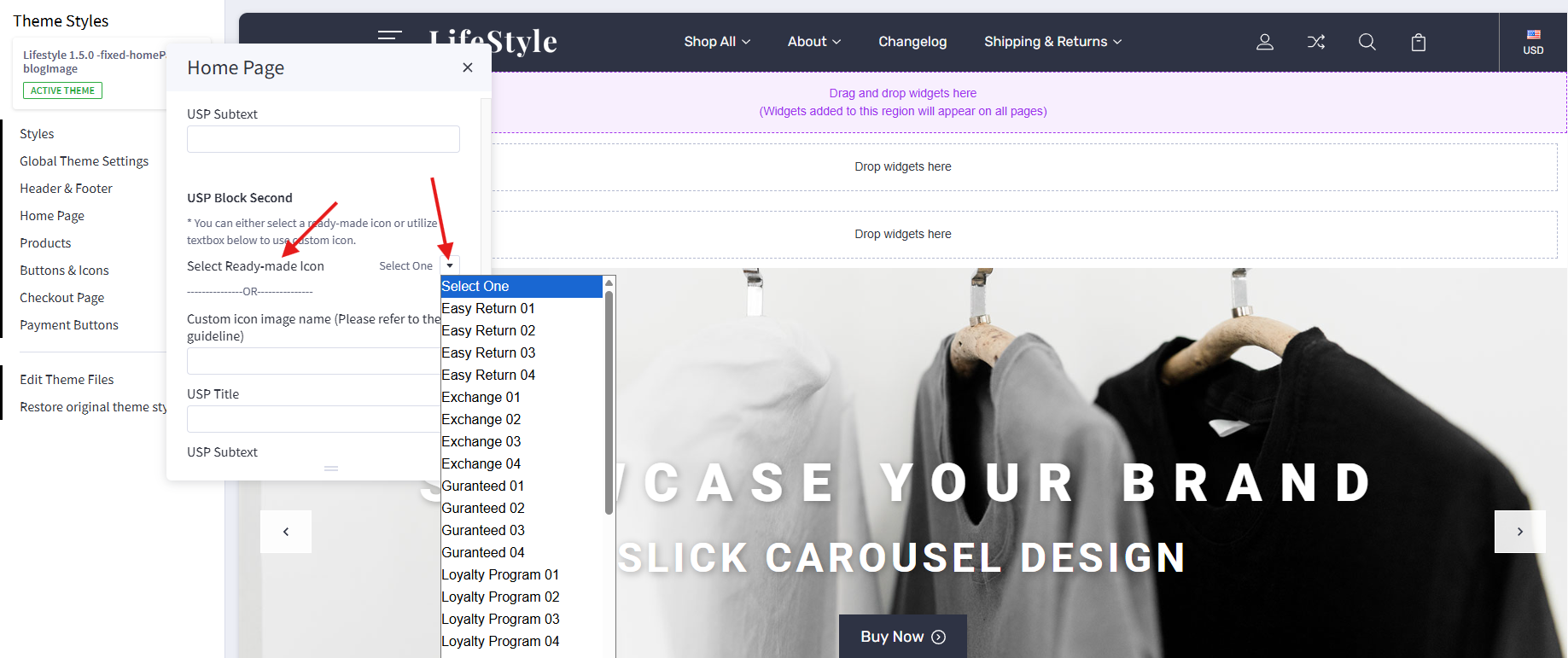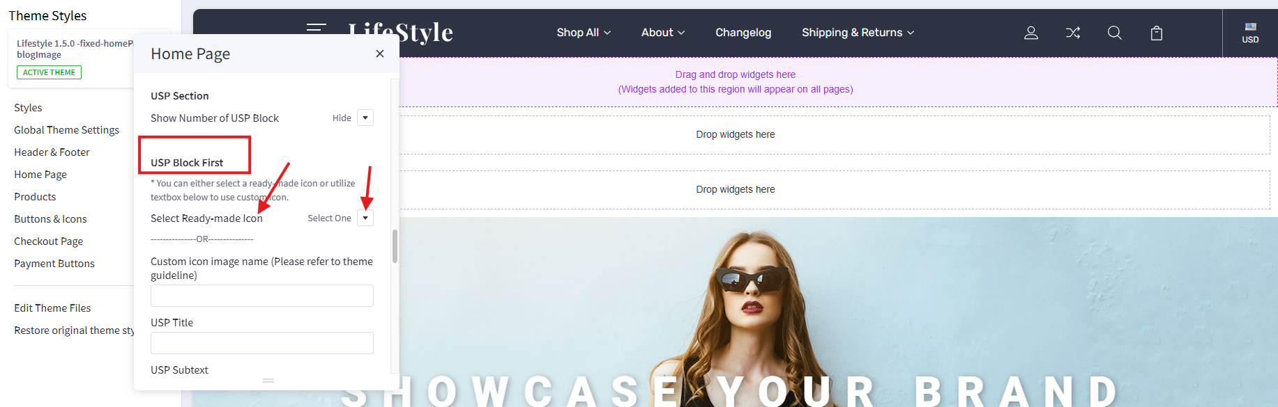 No. of New Products (Max 12) - Add up to 4 USPs of your store, title, and images. Unique Selling Propositions (USPs) are the unique qualities or features your business has that your competitors might not. USPs help businesses boost sales or acquire more customers. The USP section on the homepage is set to disable by default. You have to access this setting and add icons & descriptions to showcase USPs on the homepage.